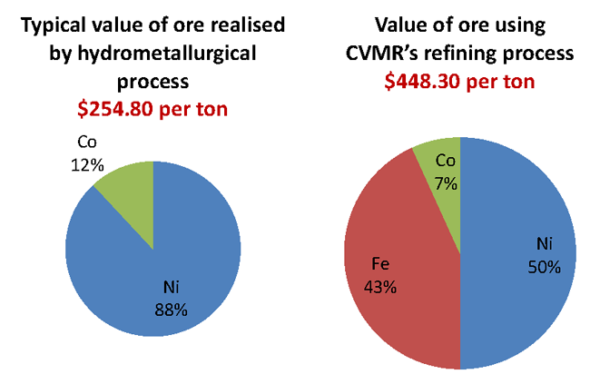 - CVMR®’s process for refining of Ferralite and Saprolite ore maximizes value of the ores by producing value added products.